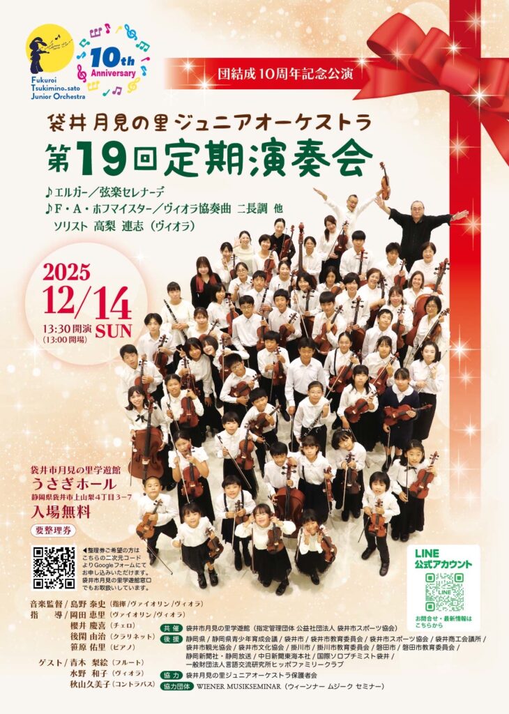 希望するみんなが参加できる音楽が好きな仲間が集まった袋井市発のジュニアオーケストラです。2015年12月にスタートし、今年活動10年目を迎えます。