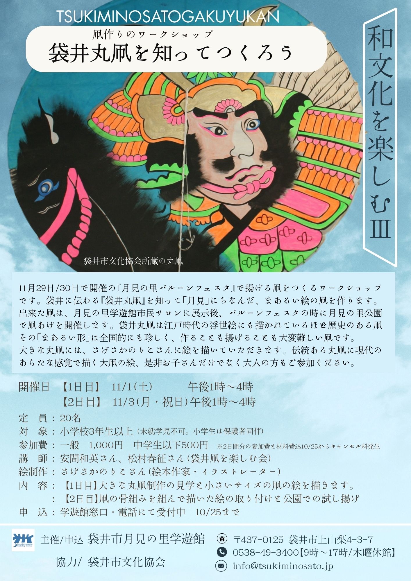 ワークショップで作成した凧は11月に開催の「月見の里バルーンフェスタ」で揚げる予定です。