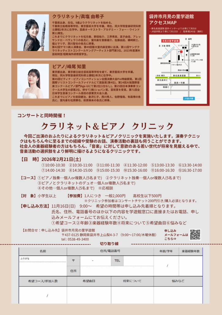 出演者によるクラリネットとピアノのクリニックも同時開催いたします。