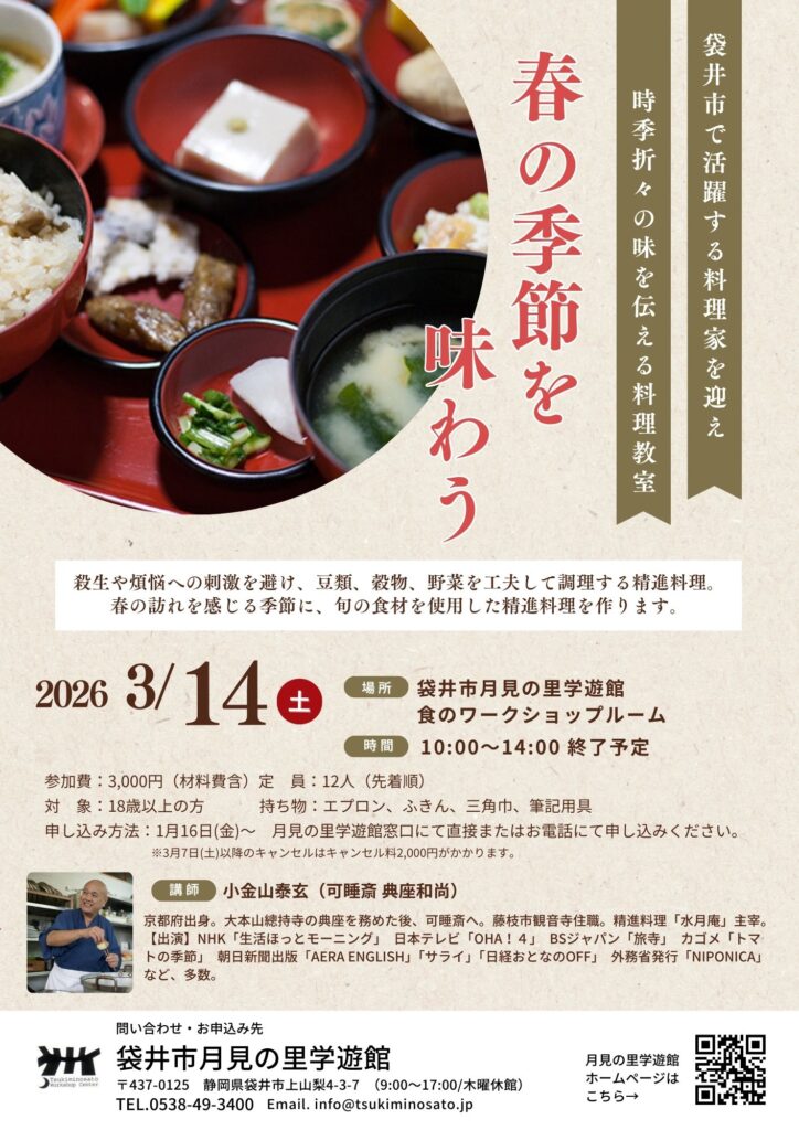 可睡斎典座和尚・小金山泰玄さんをお迎えし、季節の食材を使って、体にやさしい精進料理を作ります。