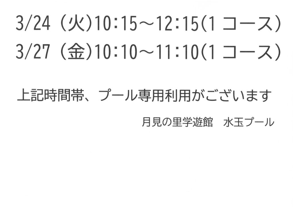 水玉プール 3月 プールコース専用利用のお知らせ